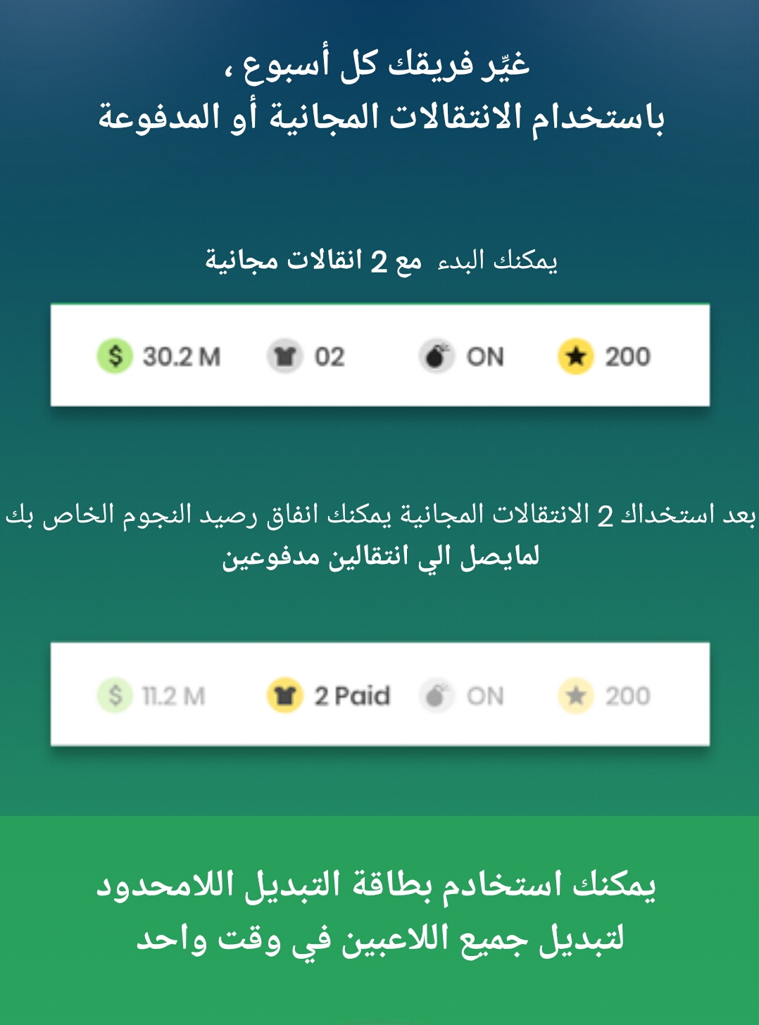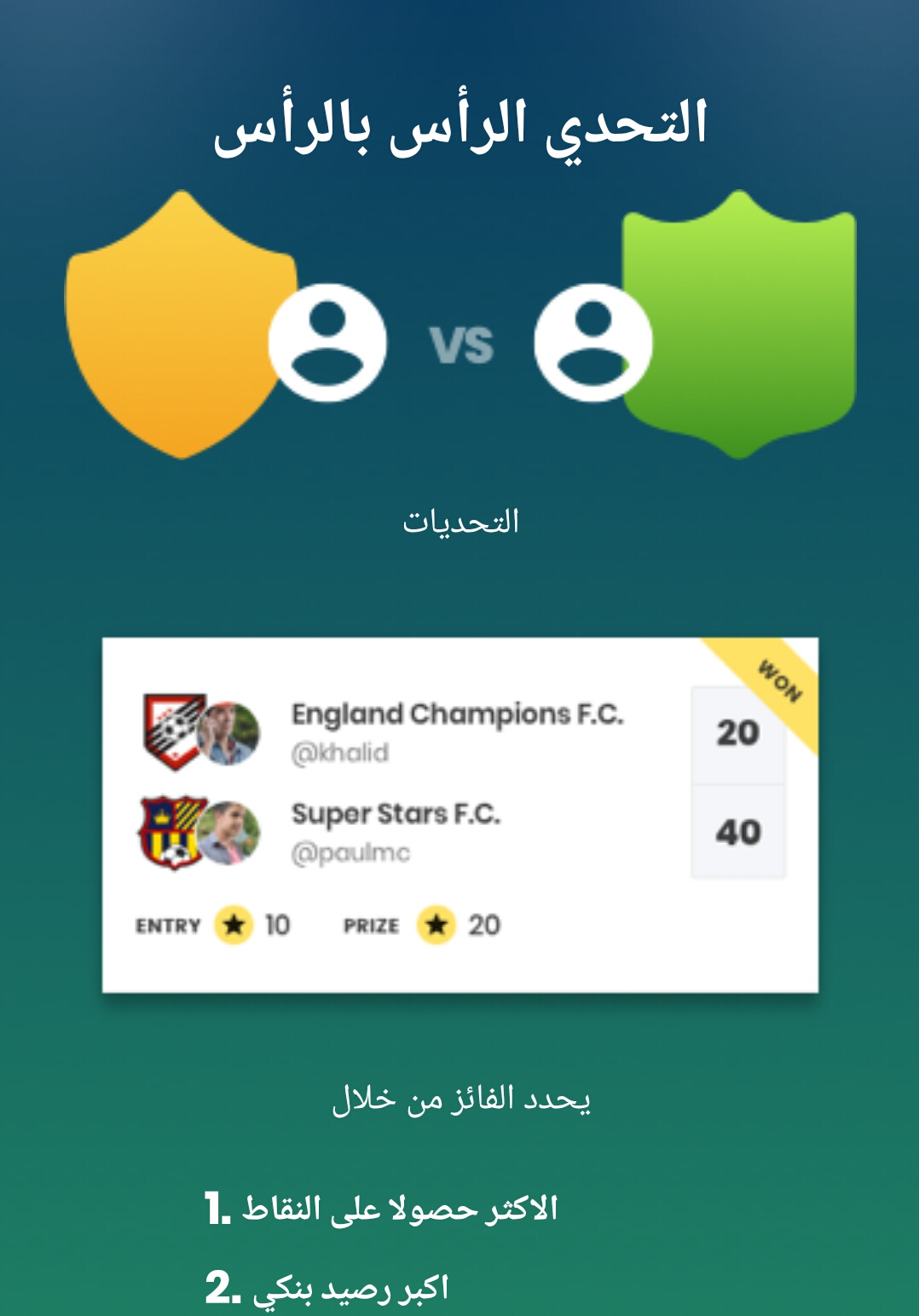 شرح لعبة الفانتازي لعبة الفانتازي بإختصار هي محاكاة للواقع ، بمعنى أنه تقوم بإختيار فريقك المكون من 11 لاعب ، وعلى حسب أدائهم في الواقع تحصل على نقاط داخل لعبة الفانتازي . حيث تقوم أنت بدور المدرب في سوق الانتقالات وتكون لديك ميزانية بمبلغ قدره 100 مليون . يمكنك إختيار 3 لاعبين من نفس الفريق كحد أقصى . *التشكيلة وخطة اللعب : يجب أن يكون فريقك جاهزاً قبل بداية كل جولة بساعة (قبل ساعة سيحفظ النظام تشكيلتك بشكل نهائي وسيتم اغلاق التغيير في التشكيلة ولايمكنك إجراء تغيير بعد ذلك وهو مايعرف بالديدلاين)، حيث تقوم بإختيار 11 لاعب وخطة اللعب التي ترى أنها مناسبة ( 3،5،2 & 4،4،2 << 4،5،1 << 3،4،3 << 3،6،1 << 5،3،2 << 5،4،1 ) ويجب عليك ايضآ. بتركيز وتأني إختيار كابتن لفريقك بحيث يحصد ضعف النقاط الذي تحصل عليها في كل جولة جولة (مثلآ اخترت لاعب وسط كابتن لفريقك وسجل هدف وصنع هدف وجمع 11 نقطة حينها تتضاعف نقاطه وتصبح 22 نقطة ) لذا يجب عليك التركيز جيدآ والتفكير قبل اتخاذ قرارك من ستمنحه الكابتن في كل جولة وهل هو قادر على التسجيل والصناعة والأهم من ذلك كله عليك أن تتأكد من أن كابتنك سيلعب أساسيآ حتى لا تفقد هذه الميزة . *طريقة إحتساب النقاط : ستمنح نقاط كالآتي : & المشاركة أساسي = 2 نقطة. & الدخول كبديل = 1 نقطة. & حارس مرمى أو مدافع سجل هدف = 7 نقاط . & لاعب وسط سجل هدف = 6 نقاط. & مهاجم سجل هدف = 5 نقاط & صناعة هدف = 3 نقاط & محافظة الحارس وخط الدفاع على شباكهم نظيفة = 5 نقاط لكل منهم & التصدي لركلة جزاء يمنح الحارس 5 نقاط. & في كل 2 تصدي للحارس 1 نقطة & إهدار ركلة جزاء -3 & بطاقة حمراء -3 & تسجيل هدف عكسي -2 & التسبب في ضربة جزاء -2 *التغييرات : ما بين جولة و جولة لديك 4 تغييرات منها تغييرين مجانيين و2 مدفوعين عن طريق ستارز كريدت 100 ستارز لكل تغيير (يمكنك شراء ستارزكريدت من المتجر) . أما إذا أردت أن تجري عدد غير محدود من الصفقات يمكنك ذلك مرتين فقط طوال الموسم باستخدام خاصية ال wildcard التي تعطى للمدرب مرتين، مرة في النصف الأول من الموسم ومرة في النصف الثاني . * الدوريات الخاصة : بمجرد تسجيلك في التطبيق واختيار تشكيلتك تصبح تلقائيآ داخل المنافسة في جدول الترتيب العالمي وبإمكانك إنشاء أو الإنضمام إلى دوريات عامة يمكن الاشتراك فيها فقط بضغطة زر او دوريات خاصة يمكن الإشتراك بعد إدخال الكود الخاص بالدوري (كود مكون من 4 ارقام يمدك به صاحب الدوري الخاص سواء كان صديقك او اي جهة تنظم دوري خاص) . توجد من نوعين من الدوريات منها دوري كلاسيكي يكون ترتيبه بالمعدل النقطي وصاحب اعلى نقاط بنهاية الدوري يكون هو الفائز وايضا دوري تحدي الرأس بالرأس (هيد تو هيد) ويكون بين شخصين كل جولة مثلآ تريد أن تتحدى صديقك هيد تو هيد على أن تنفق انت 100 ستارز كريدت وينفق صديقك 100 ستارز كريدت وبنهاية الجولة سيحصل الفائز بأعلى نقاط على 200 ستارز كريدت ولا شئ للخاسر. * الجوائز : سيحصل متصدرو الترتيب العالمي بنهاية الدوري على جوائز قيمة سنعلن عنها تباعآ قبل انطلاقة كل دوري كما أن هنالك جوائز أسبوعية سيتم الإفصاح عنها. * كيفية التسجيل : تحميل او تحديث التطبيق الخاص بنا (Stars League) من متجر بلاي ستور أو آبل ستور وتعبئة الفورم الخاص بالبيانات ومن ثم تختار تشكيلتك وتتحدى اصدقاءك وكل مدربي الفانتازي على مستوى العالم. هيا بنا 💪💪💪